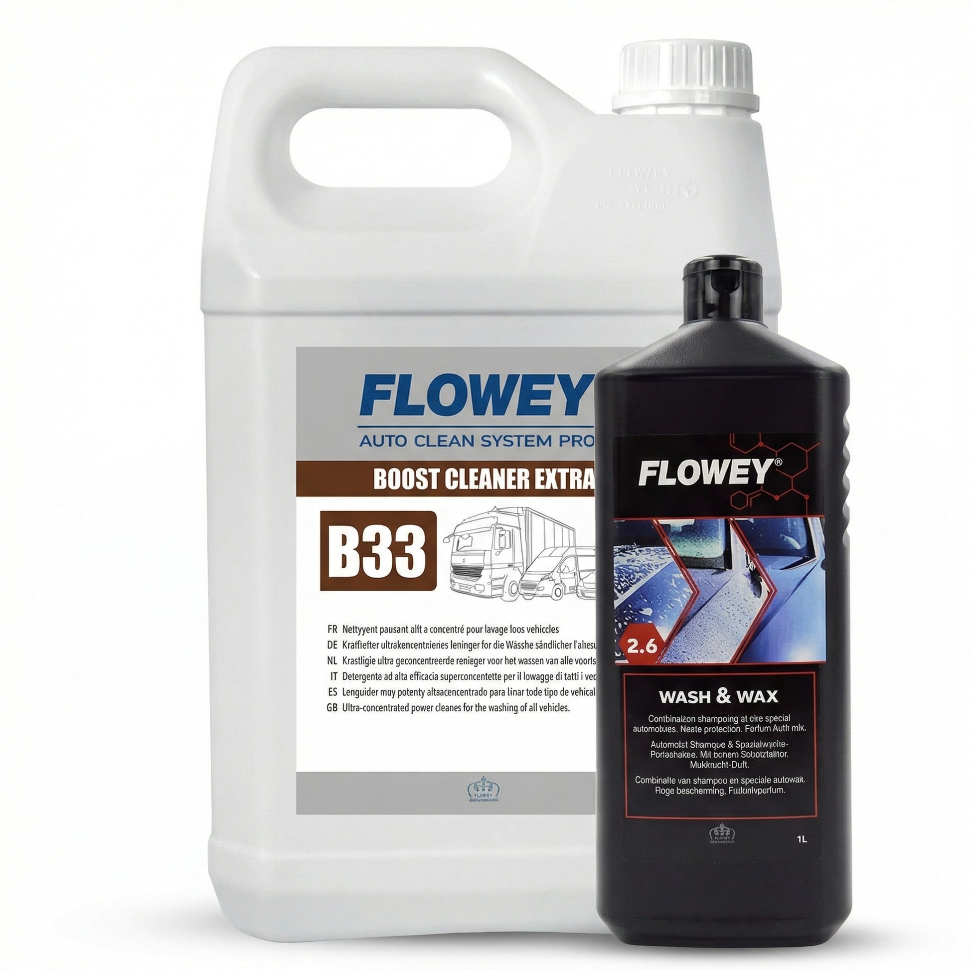 B33 5L sørger for kraftig forvask som løser opp trafikkfilm og skitt, Champoo 2,6 gir skånsom og effektiv håndvask, og vaskehansken reduserer risikoen for vaskeriper. Perfekt for deg som vil ha ren bil – raskt og enkelt.